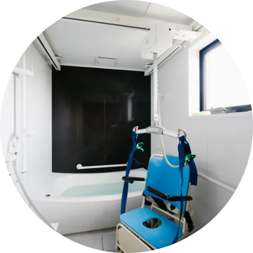 リフトでの個別入浴介助や車椅子対応送迎など、一人ひとりのニーズに合わせた丁寧なサポートを提供します。