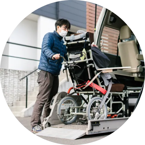 送迎エリアは、別府市内および日出町となっており、車椅子対応の送迎車もご用意していますので、移動が難しい方も安心してご利用いただけます。