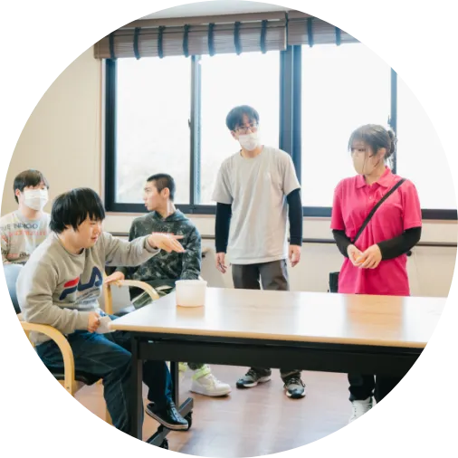 現在はサービス管理責任者として、利用者さまとのコミュニケーションを第一に、一人ひとりの意向や様々な悩み・思いを傾聴し、安心して過ごせる居場所となるような場づくりなど、ニーズに合った支援を心掛けています。 -