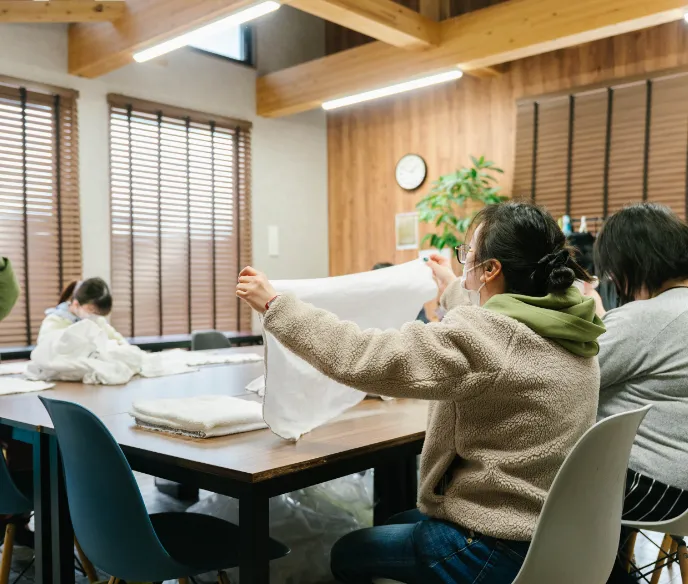 例えば、ホテルで使用される浴衣やタオル、一般の方からお預かりした衣類などを、丁寧に畳んでいただきます。