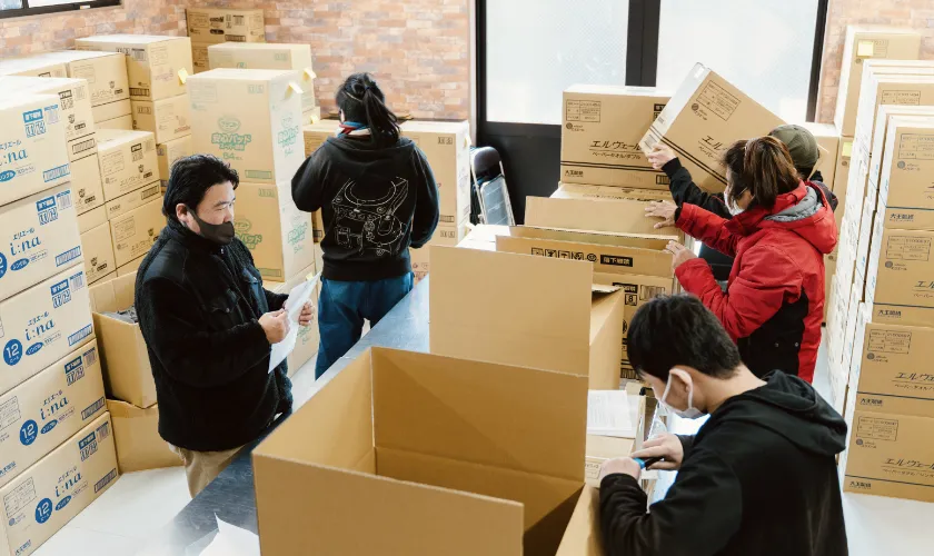 ネットショップでの注文を、伝票に従って商品を揃え、箱や袋に詰めて発送する作業です。