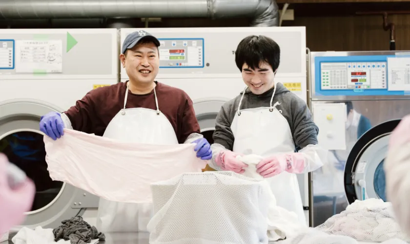 医療・介護施設やホテル、旅館などで使われたタオルやシーツ、衣類などの仕分け、乾燥を行います。