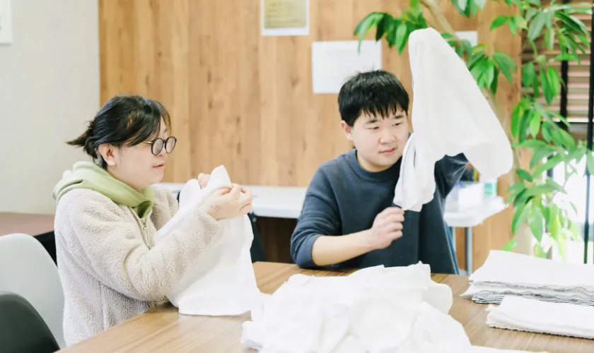 タオルや衣類の畳み作業など、様々な軽作業を行っています。