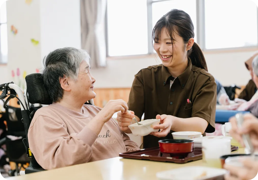 利用者さまの尊厳を尊重し、自分らしい生活を送れるように、広々とした居室や充実した設備、そして笑顔あふれる温かいケアを提供しています。